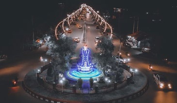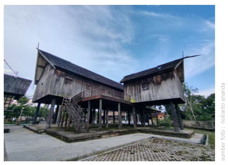 Memiliki taman yang luas untuk bersantai yang di lengkapi dengan beberapa replika-replika gambaran yang bermotif dayak, beberapa kafe yang ada di pinggir, serta adanya patung “upu dengan wawei” yang berarti laki – laki dan perempuan yang ada di depan panggung.