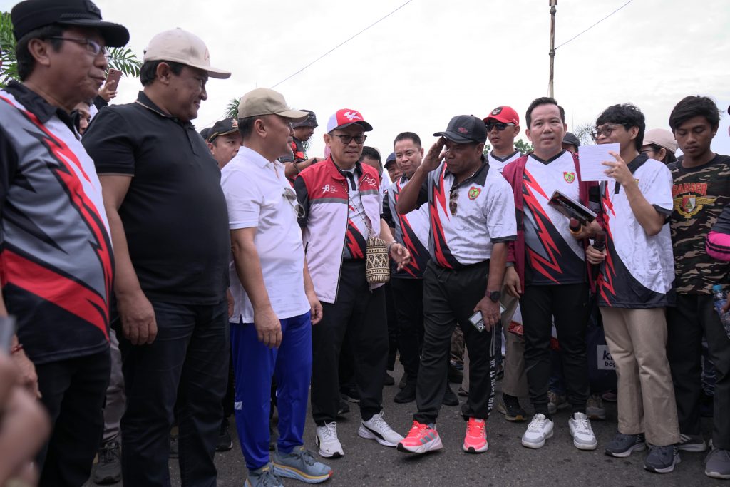 Gubernur Sugianto Sabran dan Wakil Gubernur Edy Pratowo menyapa dengan ramah dan membaur dengan masyarakat Barito Timur yang bersama-sama melaksanakan jalan sehat sejauh 3 km.