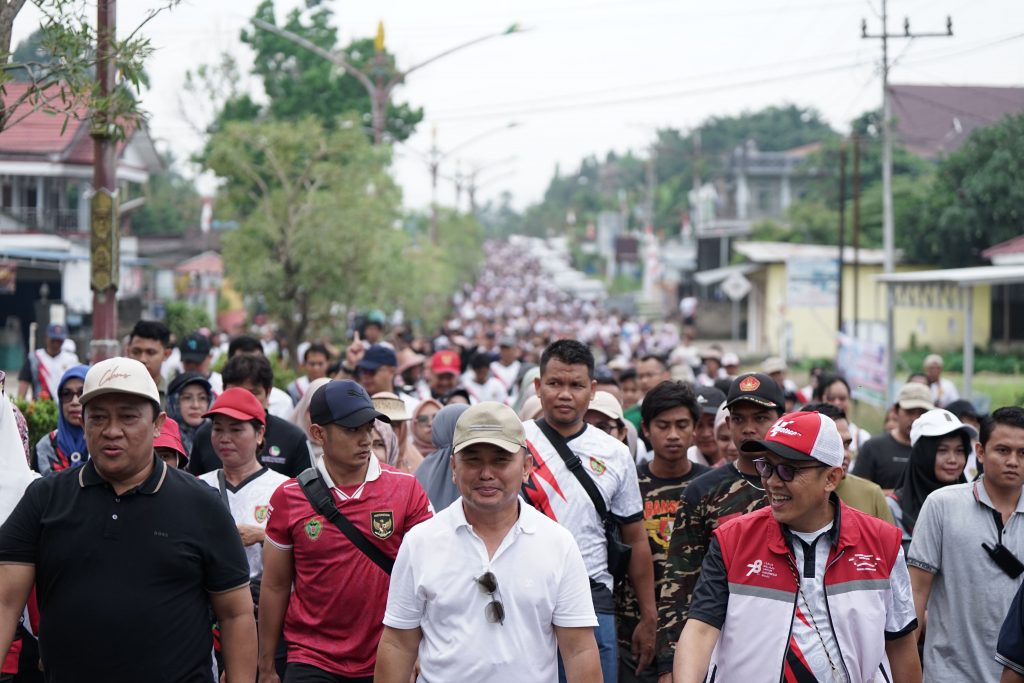 “Kita harus mencontohkan pola hidup sehat kepada masyarakat, tidak usah olahraga berat-berat cukup jalan kaki minimal 45 menit sehari saja sangat cukup untuk kebutuhan olahraga dalam sehari,” ujar Sugianto sembari jalan sehat mengajak masyarakat untuk menerapkan pola hidup sehat.