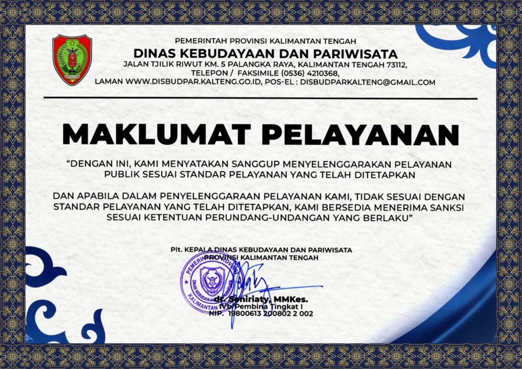Dengan penuh rasa syukur, kami menyambut hadirnya Website Pejabat Pengelola Informasi dan Dokumentasi (PPID) Dinas Kebudayaan dan Pariwisata Provinsi Kalimantan Tengah sebagai bentuk komitmen kami dalam mewujudkan tata kelola pemerintahan yang transparan, akuntabel, dan responsif terhadap kebutuhan masyarakat.