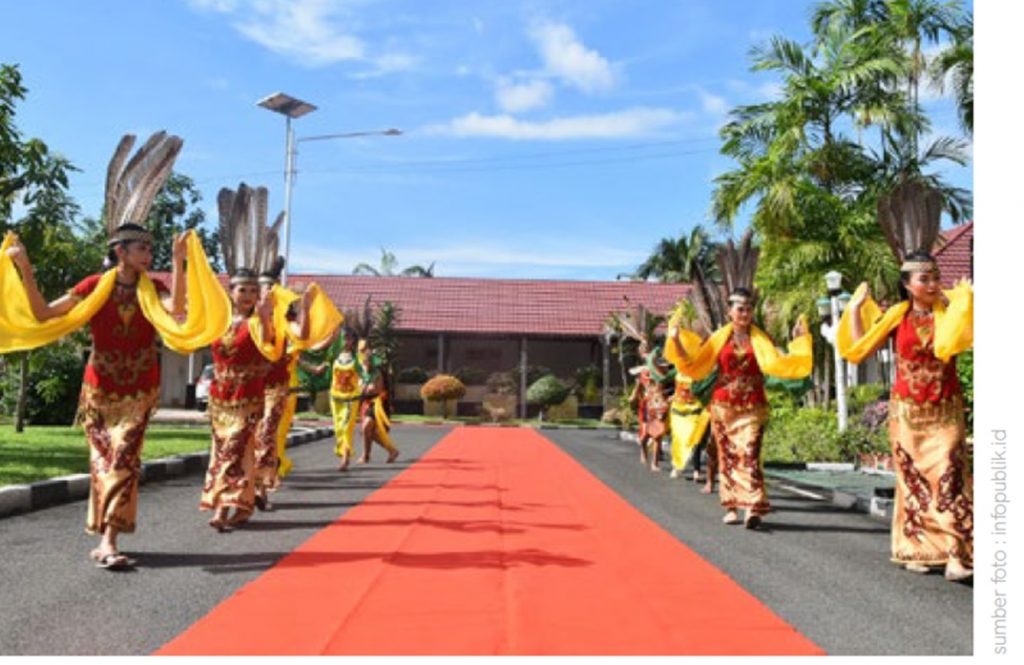 Terlihat dari formasi dan warna warni busananya maupun gerakan tangan ke kiri dan ke kanan. Memutar lalu maju ke depan. Cengkok dan irama dalam semua gerakan sejak awal hingga selesainya tarian dipentaskan, tampak penarinya riang gembira. Tarian ini konon untuk menyambut tamu-tamu agung, tamu kebesaran dan tamu pemerintahan yang berkunjung ke pemprov Kalteng, intinya adalah tarian “selamat datang”.